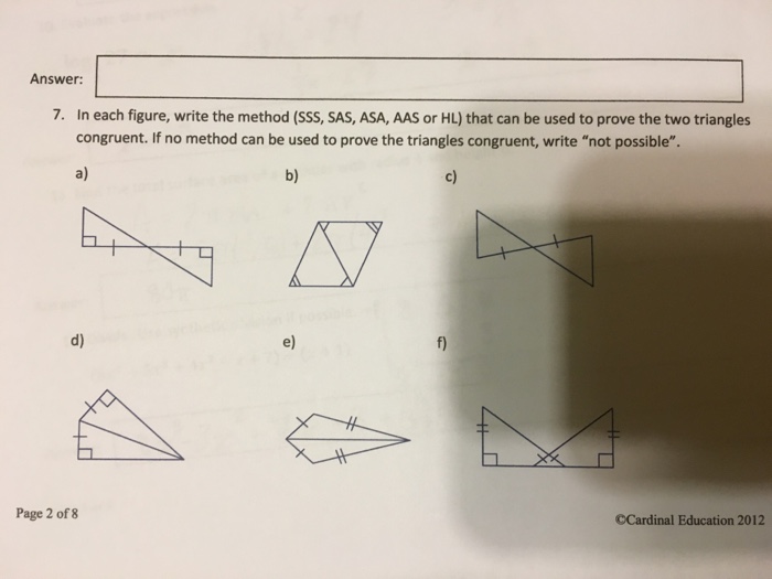 Show that the two triangles are congruent using the aas theorem. Two triangle are congruent by either sas (side angle side), aas (angle angle side), or asa (angle side angle). A problem 4 determining whether triangles are congruent 21. That these two triangles are congruent. This statement is the same as the aas postulate because it includes right angles (which are congruent), two congruent acute angles, and a pair of congruent hypotenuses.